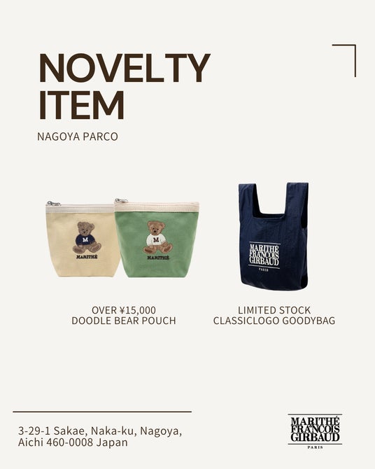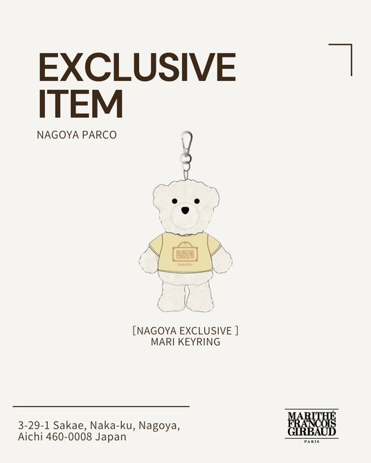 名古屋限定アイテムとして、名古屋のシンボルである“金”をイメージしたカラーの「マリちゃんキーリング」をご用意しております。さらに、26SSシーズンの最新コレクションまで幅広く取り揃え、 ご来店のお客様にはノベルティキャンペーンをはじめとする特別なプロモーションも展開いたします。