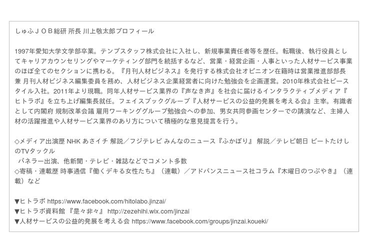 ■しゅふJOB総研 所長 川上敬太郎より