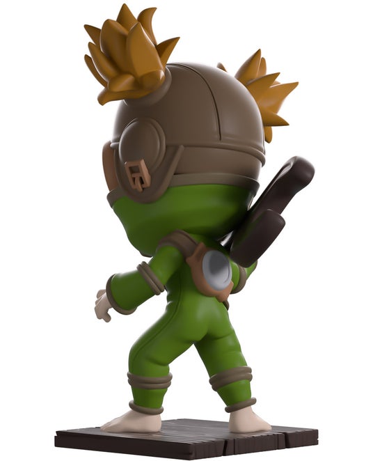 全身を覆うグリーンのスーツを身にまとい、右肩には大きなレンチを担いだ姿が印象的なフィギュアです。
