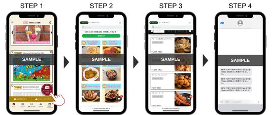 本イベントでは、会場内の飲食ブースに出店する7店舗に当社が運営するモバイルオーダーシステム「NEW PORT」を導入。横浜赤レンガ倉庫イベント公式アプリから注文サイトに遷移し、来場者は会場のどこからでも掲載メニューの閲覧・注文が可能です。