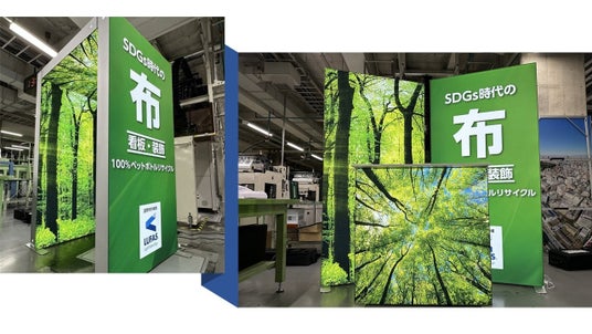ブース装飾やサイネージに。100%ペットボトル再生布を使った電照布看板「LUFAS(R)」とは