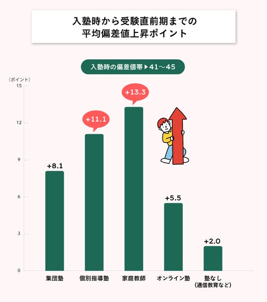 ◼️「個別指導塾」「家庭教師」の利用者が、入塾時から偏差値を10以上伸ばすという秀でた結果に