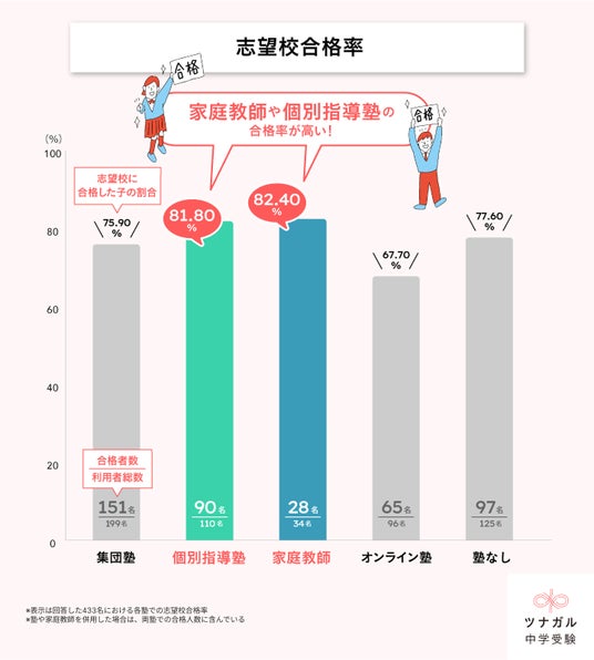 ◼️「個別指導塾」「家庭教師」を利用した子どもの志望校合格率は80%以上