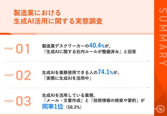 - 01|製造業デスクワーカーの40.4%が、「生成AIに関する社内ルールが整備済み」と回答