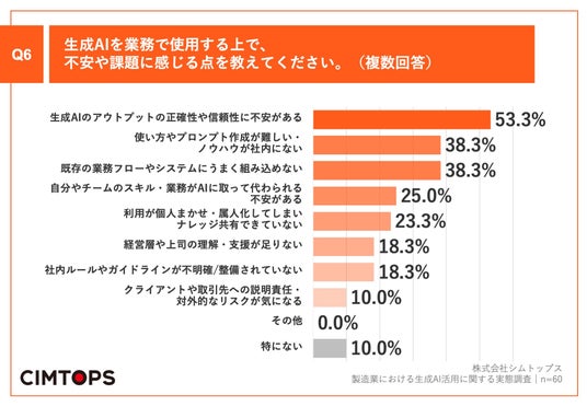 Q6.生成AIを業務で使用する上で、不安や課題に感じる点を教えてください。(複数回答)