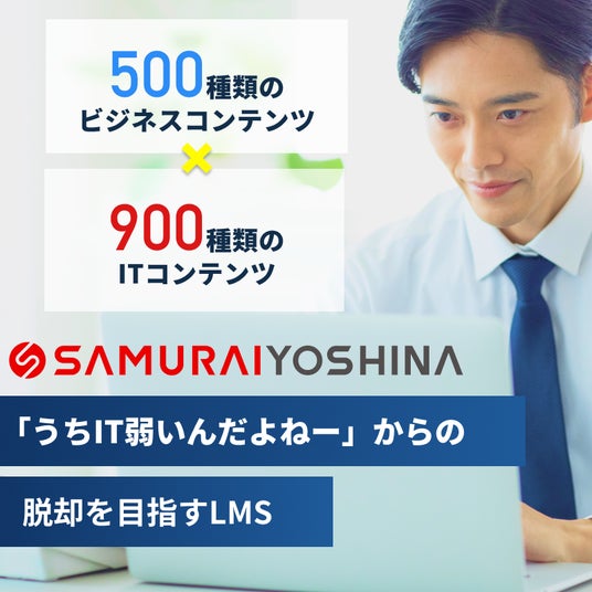 「うちIT弱いんだよねー」からの脱却を目指す学習管理システム(LMS)『SAMURAI YOSHINA』ITスキルが不安な社員が多い企業向けに、基礎からわかりやすく学べる研修内容とサポート体制で、社員一人ひとりの成長を支援し、社内全体のITスキルを底上げします。