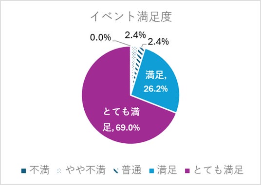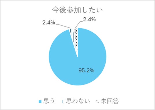 また、95%の方が「満足・とても満足」、同様のイベントへの参加についても95%の方が「参加したい」とご回答いただきました。今後も、同様にイベントを各地で開催するべく準備を進めております。