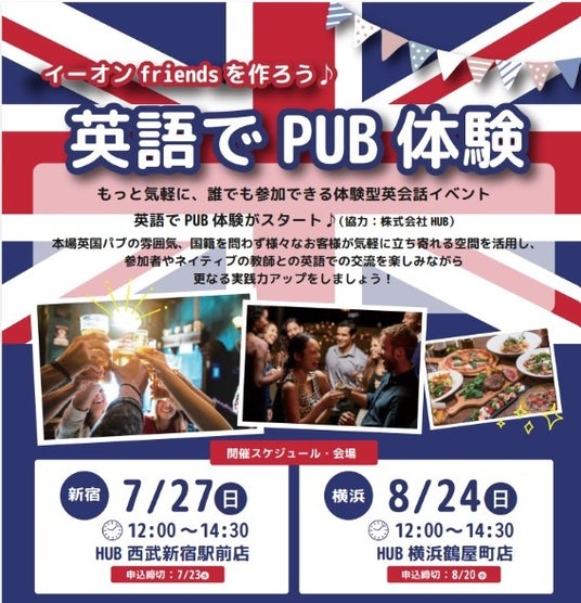 英会話教室を運営する株式会社イーオン(本社:東京都新宿区、代表取締役社長:重野卓、以下「イーオン」)は、2025年7月27日(日)に生徒様参加型イベントを「英国風PUB HUB西武新宿駅前店」にて開催しました。