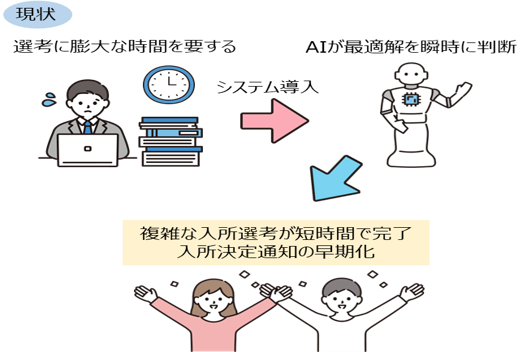 これらの課題を解決すべく、AI選考システムを導入することで、業務の効率化を図り、多様な保護者のニーズに沿った選考を目指します。
