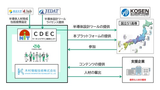 木村情報技術株式会社(本社:佐賀県佐賀市、代表取締役:木村 隆夫、以下「木村情報技術」)と有明工業高等専門学校(所在地:福岡県大牟田市、以下「有明高専」)は、全国の高専生(※1)を対象として共同開発した半導体人財共育プラットフォーム「COGAKUSEE(コウガクシー)」において、支援企業の募集を開始しました。