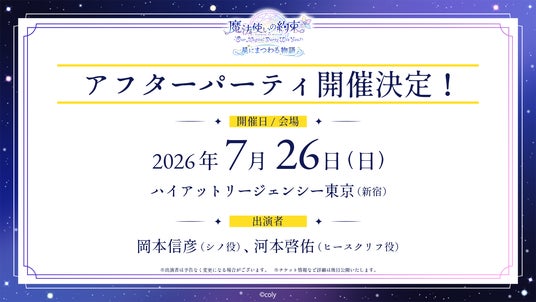 株式会社coly(東京都港区、代表取締役社長:中島杏奈)は、2026年7月25日(土)にパルテノン多摩 大ホールにて開催予定の「『魔法使いの約束』~Our Magical Party Wiz You!~ 星にまつわる物語 」本公演の出演者情報を公開しました。