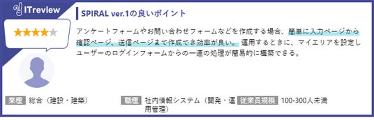 - 「SPIRAL ver.1」に対するITreviewユーザー評価 ※一部抜粋