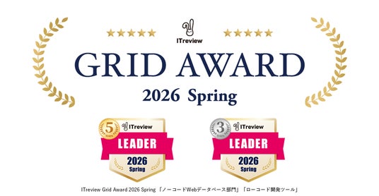 デジタルで未来最適をリードするスパイラル株式会社(東京都港区、代表取締役グループCEO 佐谷 宣昭)は、「ITreview Grid Award 2026 Spring」にて、主力製品のローコード開発プラットフォーム「SPIRAL ver.1」が、『ローコード開発ツール』『ノーコードWebデータベース』の2部門にて最高位の「LEADER」を受賞しましたので、お知らせいたします。