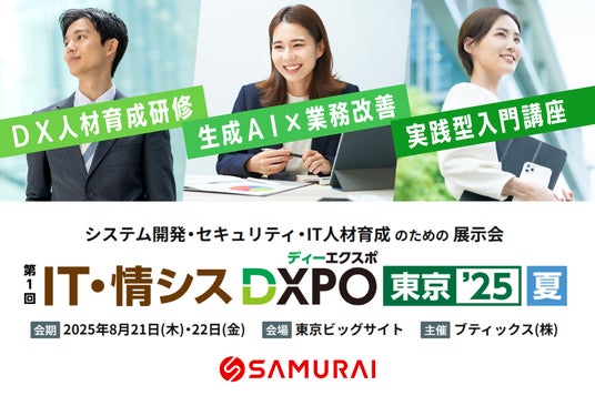 プログラミングスクール『侍エンジニア』を運営する株式会社SAMURAI(本社:東京都港区、代表取締役:羽田 吾立)は、2025年8月21日(木)・22日(金)に東京ビッグサイトで開催される展示会『IT・情シスDXPO東京’25』に出展いたします。