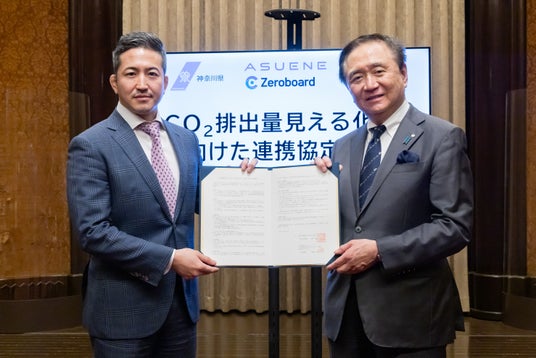 企業のサステナビリティ経営を支援する株式会社ゼロボード(東京都港区、代表取締役:渡慶次道隆、以下 当社)は、神奈川県(知事:黒岩祐治)と「県内事業者におけるCO2排出量見える化促進に向けた連携協定」を締結し、2025年4月16日に神奈川県庁で行われた締結式に代表取締役の渡慶次道隆が出席しました。今後、神奈川県内事業者の脱炭素化にともに取り組んでまいります。