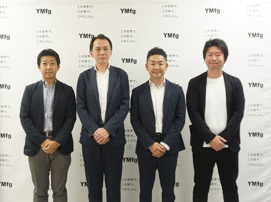 写真左から、山口フィナンシャルグループ 成長戦略事業本部 地域共創室 室長 兼 YMFG ZONEプラニング 代表取締役 藏重 嘉伸氏、山口フィナンシャルグループ 執行役員 成長戦略事業本部長 村田 直輝氏、ドリームインキュベータ 執行役員 宮内 慎、エクスペリサス 代表取締役 丸山 智義氏