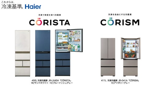 ハイアール ジャパン セールス株式会社(本社:大阪市、代表取締役社長:杜 鏡国)は、『これからは冷凍基準。』のコンセプトのもと、2023年発売の470L冷凍冷蔵庫「CŌRU」に続く大容量タイプの450L冷凍冷蔵庫JR-LX45A「CŌRISTA」と411L冷凍冷蔵庫JR-G41A「CŌRISM」を、2025年12月17日より全国の家電量販店、ホームセンター、GMS、WEB通販などで順次発売いたします。