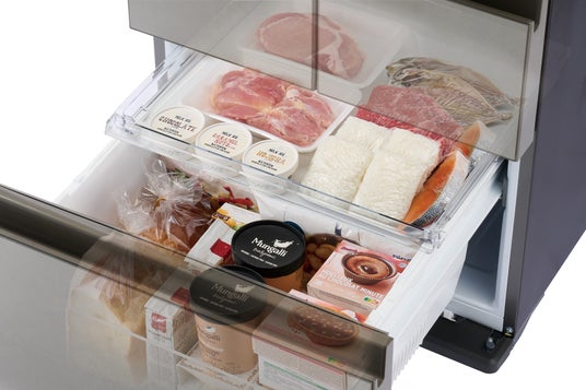 「鮮度キープ冷凍」は、冷気の出入り口に開閉式の蓋を設置することで、霜取り運転時に蓋を閉じて暖気の流入を遮断し、冷凍室内の温度変化を抑制。室内の温度変化を抑えることで霜付きを低減する冷凍技術です。霜つきを大幅に抑えることで解凍してもドリップが出にくく、食材の旨味と食感を長持ちさせます。