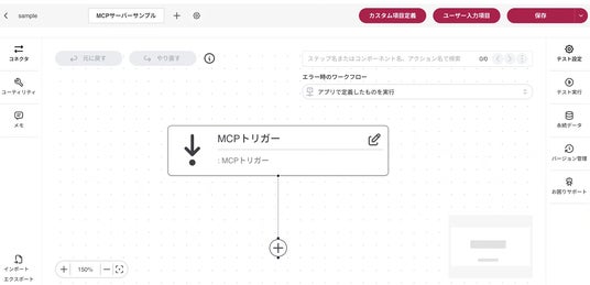 「JOINT AI Flow」のワークフロー構築画面内で、MCPトリガーを使用し連携を設計