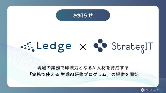 株式会社ストラテジット(本社:東京都港区、代表:加藤 史恵、以下当社)は、AI・データ利活用コンサルティングおよびAI専門メディア「Ledge.ai」を運営する株式会社レッジ(本社:東京都品川区、代表取締役:小瀧 健太、以下 レッジ)と共同で、現場の業務で即戦力となるAI人材を育成する「実務で使える 生成AI研修プログラム」の提供を開始いたしました。