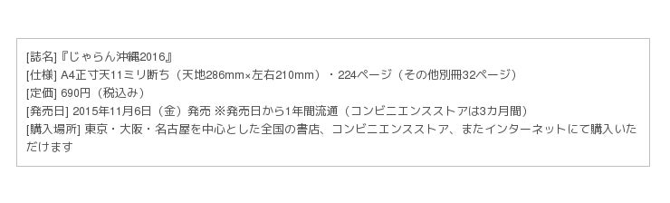株式会社リクルートライフスタイル(本社:東京都千代田区、代表取締役社長:淺野 健)が編集を行う国内旅行情報誌『じゃらんムックシリーズ』(編集長:宮下 真衣子)は、大人女子をターゲットにした『じゃらん沖縄2016』を、全国の書店・コンビニエンスストアなどにて、2015年11月6日(金)より発売することをお知らせします。