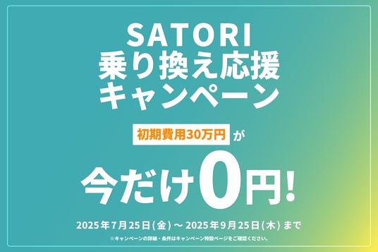 マーケティングオートメーション(以下、「MA」)ツール「SATORI」を開発・提供するSATORI株式会社(所在地:東京都渋谷区、代表取締役:植山 浩介、以下、「当社」)は、他社製MAツールからの乗り換えを検討している企業を対象に、初期費用30万円(税別)が無料になる「MAツール乗り換え応援キャンペーン」を、本日2025年7月25日(金)より開始します。