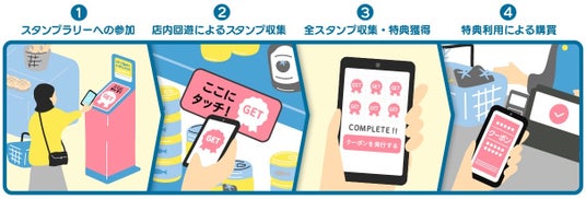 本機能の本格提供に先立ち、大手量販店において先行的にスタンプラリー施策を実施いたしました。同施策では、商品棚にチェックポイントとなるタッチポイントを複数設置し、来店者が店内を回遊しながらスタンプを収集、全スタンプの獲得後に限定特典を受け取れる仕組みを展開しました。