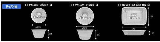 「FTドリスNK」と「FT温デリNK」シリーズは、それぞれ以下のサイズと容量で展開しています。
