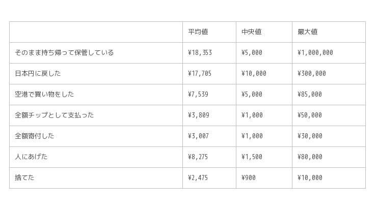 この調査結果から、外貨を日本に持ち帰ってタンスの肥やしにしたり、捨ててしまったり、海外旅行後の外貨が必ずしもお金として活用されていない実態がわかります。
