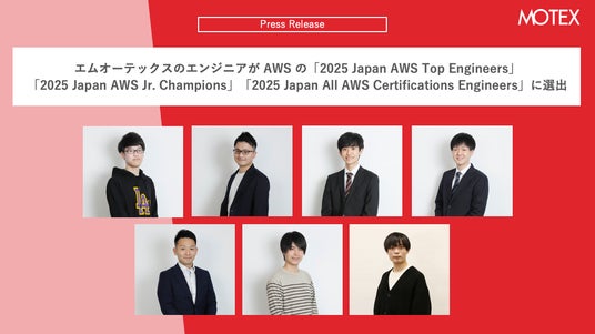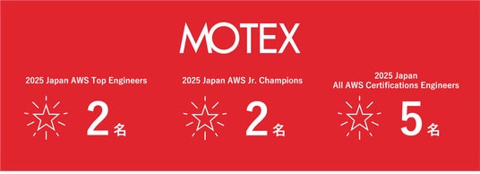 エムオーテックス株式会社(本社:大阪市淀川区、代表取締役社長:徳毛 博幸、以下MOTEX)は、アマゾン ウェブ サービス(AWS)のパートナープログラム「AWSパートナーネットワーク(APN)※1」において、専門知識と経験を保有しているメンバーが選出される「2025 Japan AWS Top Engineers」に2名、社会人歴1~3年目で突出した AWS 活動実績を保持するメンバーが選出される「2025 Japan AWS Jr. Champions」に2名、AWS 認定資格を全て保持するメンバーが選出される「2025 Japan All AWS Certifications Engineers」に5名のMOTEX社員が選出されたことを発表します。