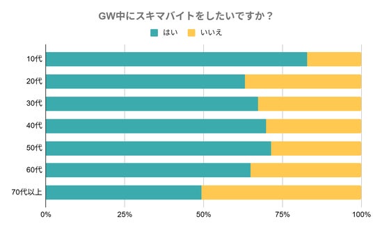 ~GWにスキマバイトではたらきたい方が57.4%で過半数に、昨年比約1.3倍で就業意欲が増加~