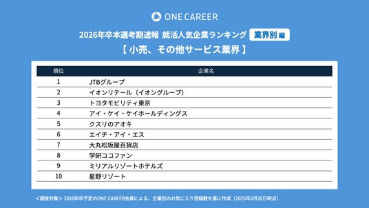 就活人気企業ランキング【業界別編】(26卒本選考期速報)順位一覧