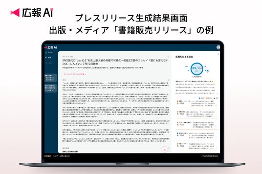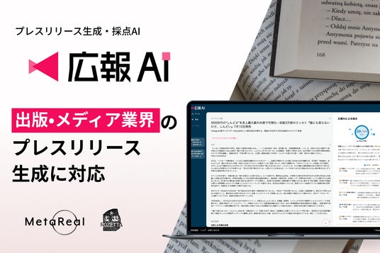 メタリアル・グループの株式会社ロゼッタ(本社:東京都千代田区、代表取締役:五石 順一)が提供する、メディアに掲載されやすいプレスリリースを生成・採点可能な『広報AI』が、出版・メディア業界のプレスリリース作成に対応しました。新刊や企画の差別化が難しく、話題性や速報性の確保に悩む出版・メディアの広報に対し、読者に響く表現の自動生成と、資料からの素早い要点抽出で“今伝えるべき1本”をスピーディに仕上げます。