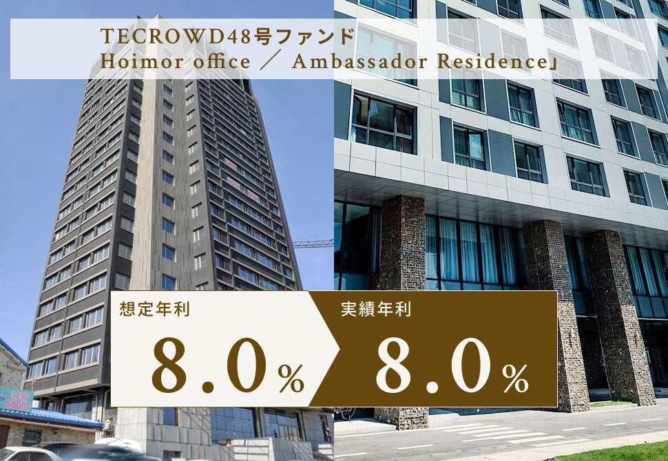 TECRA株式会社(本社:神奈川県横浜市西区、 代表取締役社長:新野博信)は、当社が運営する不動産クラウドファンディングサービス「TECROWD」の48号ファンド、 Hoimor office / Ambassador Residence が、2025年9月30日に運用を終了し、同年10月15日に元本償還および配当金支払を完了したことをお知らせいたします。