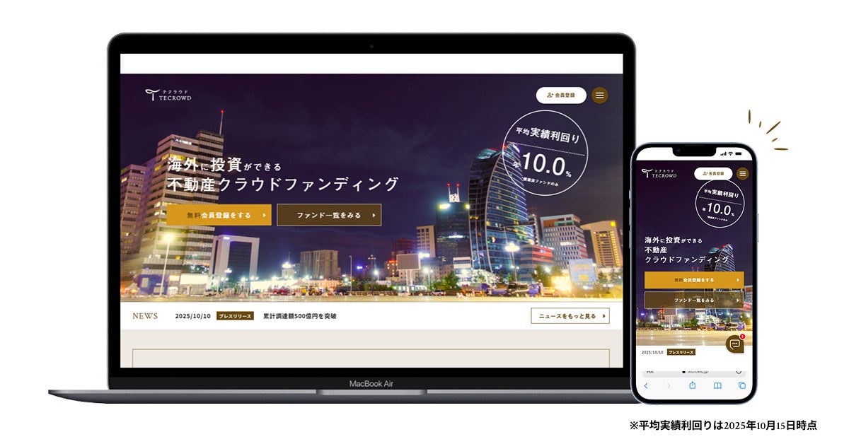 1口10万円から投資ができる不動産クラウドファンディング「TECROWD」の48号ファンド(出資総額約9,900万円)が2025年10月15日(水)に元本償還および配当金支払が終了したことをお知らせいたします。