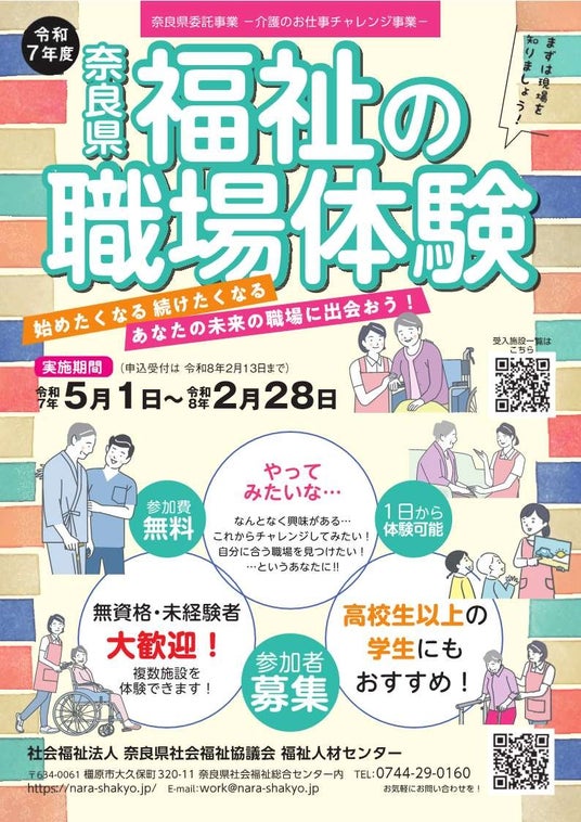奈良県内の福祉施設で、福祉のお仕事を実際に体験いただけます。