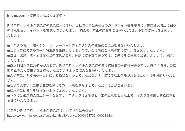 店舗の営業時間に準じ、hmv museumの営業日・営業時間が変更となる可能性もございます。