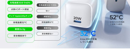 サイズはわずか2.8cm角、重さはたったの26g。ポケットにすっぽり収まるミニマル設計ながら、20Wの急速充電に対応。