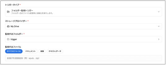 マイドライブの特定のフォルダにファイルをアップロードするだけで、AIエージェントが自動的にそのファイルを処理する自動化が使えるようになりました。