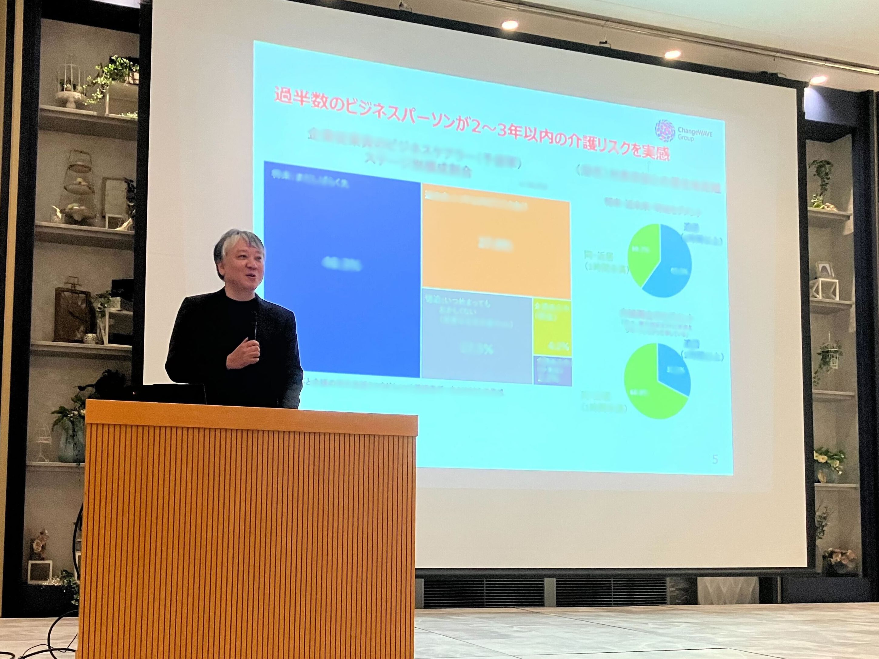 酒井は、自身の介護経験と経営マネジメントの視点を併せ持ち、これまで企業・組織支援の現場で培ってきた知見に基づき、「介護リスクに強い組織をつくるマネジメント層のコミュニケーション研修」をテーマに講演しました。