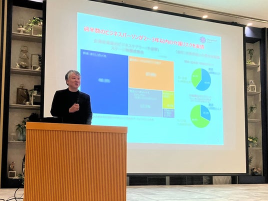 講演では、従業員の介護問題が離職やパフォーマンス低下を引き起こし、結果として企業の生産性や持続的成長を阻害するメカニズムを解説。あわせて「制度の利用を促すこと」だけでは介護離職は防げないという本質的な課題を提示し、管理職が取るべき「初動」について具体策をお伝えしました。