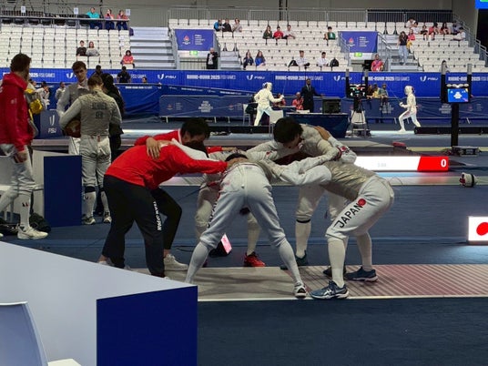 現地時間2025年7月22日(火)、ドイツ(ライン・ルール/会場:メッセエッセン)で開催された、FISUワールドユニバーシティゲームズにて、男子フルーレ団体で西口泰嵩(にしぐち やすたか/NEXUS FENCING CLUB)、菅谷優斗(すがや ひろと/青森県フェンシング協会)、林祥蓮(はやし しょうれん/青森県フェンシング協会)、福田亮介(ふくだ りょうすけ/法政大学)のメンバーで銅メダルを獲得しました。