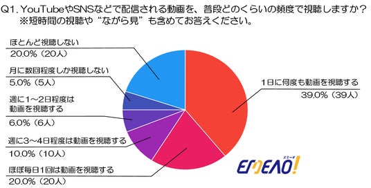 こうした背景を踏まえ、厳選された優良業者を紹介するBtoBマッチングサイト『エミーオ(https://emeao.jp/guide/post-51267/ )』は、30代の男女100名を対象にアンケート調査を実施しました。調査は「動画視聴頻度」「好まれるジャンル」「利用デバイス」という3つの視点から、30代のリアルな視聴習慣と傾向を明らかにしています。