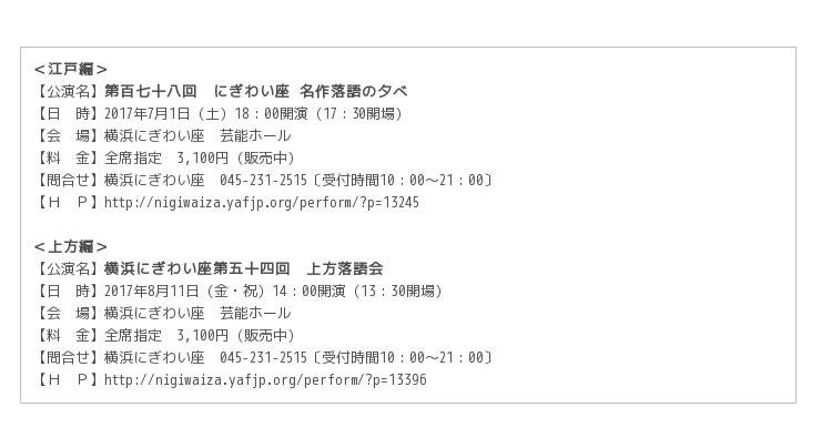 この機会に江戸落語・上方落語を通して、歴史や文化の違いをお楽しみください。