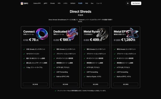 Bundleなら、RPC、gRPC、Shredsを一つにまとめて利用でき、gRPCを本番で使いながらShredsの速さも同時に検証できます。さらにERPCトークンをお得に入手できる特典も付いており、コスト効率と柔軟性の両立が可能です。