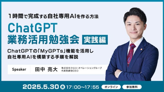 先端技術と業務(Ops)の融合に強みを持ち、生成AIを活用した業務改善支援を行う株式会社クロス・オペレーショングループ(東京都千代田区、代表取締役:田中亮大、以下XOP)にて、ChatGPT業務活用勉強会【実践編】を開催いたします。
