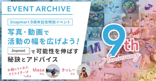 クリエイターとの共創を通じて企業のマーケティング課題の解決する、株式会社CREAVE(本社:東京都千代田区、代表取締役社長:中村真奈、以下 CREAVE)は、クリエイター向けイベントSnapmart9周年記念特別イベント【写真・動画で活動の幅を広げよう!Snapmartで可能性を伸ばす秘訣とアドバイス】のレポートを公開しました。