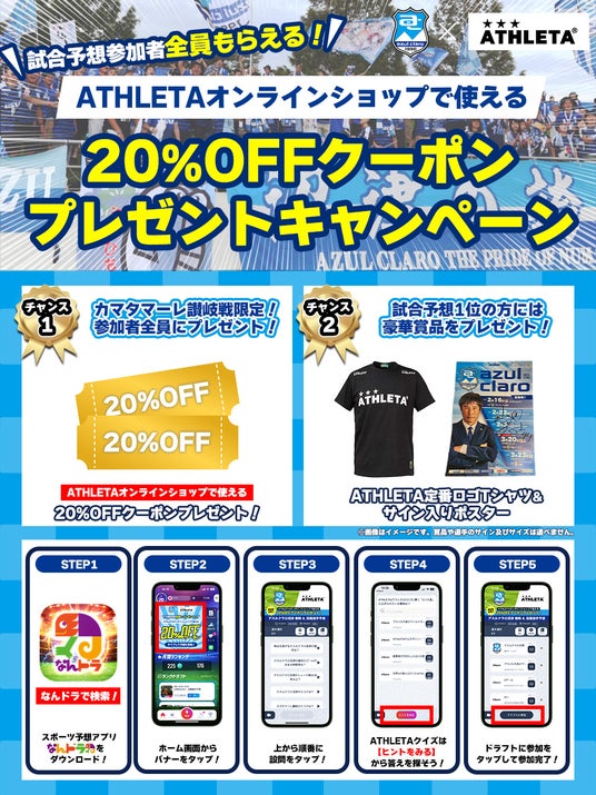 さらに、予想&クイズの参加者全員にATHLETAの公式オンラインショップで使える20%OFFクーポンもプレゼント!
