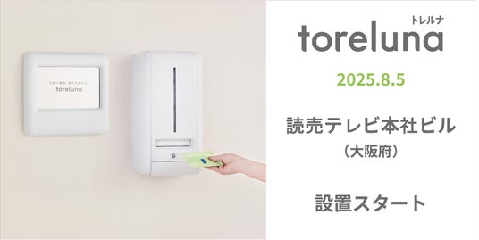 株式会社ネクイノ(大阪市北区、代表:石井 健一)は、トイレの個室で生理用ナプキンを常備し無料で提供するサービス「toreluna(トレルナ)」(以下 トレルナ)を、読売テレビ本社ビルへ設置し、サービスの提供を開始いたします。なお、本サービスの放送局施設への導入は、今回が初めての取り組みとなります。