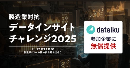 企業のDX内製化を支援する株式会社SIGNATE(本社:東京都港区、代表取締役社長:齊藤 秀、読み方:シグネイト、以下 SIGNATE)は、2025年10月15日より開催する製造業特化の実践型コンペティション、「製造業対抗データインサイトチャレンジ2025」において、ユニバーサルAIプラットフォームのリーディングカンパニーであるDataiku Japan株式会社(以下、Dataiku社)と連携することをお知らせします。本連携により、参加企業の皆様は、世界中のトップ企業に選ばれているAIプラットフォーム「Dataiku」をイベント期間中、無償で利用いただけます。